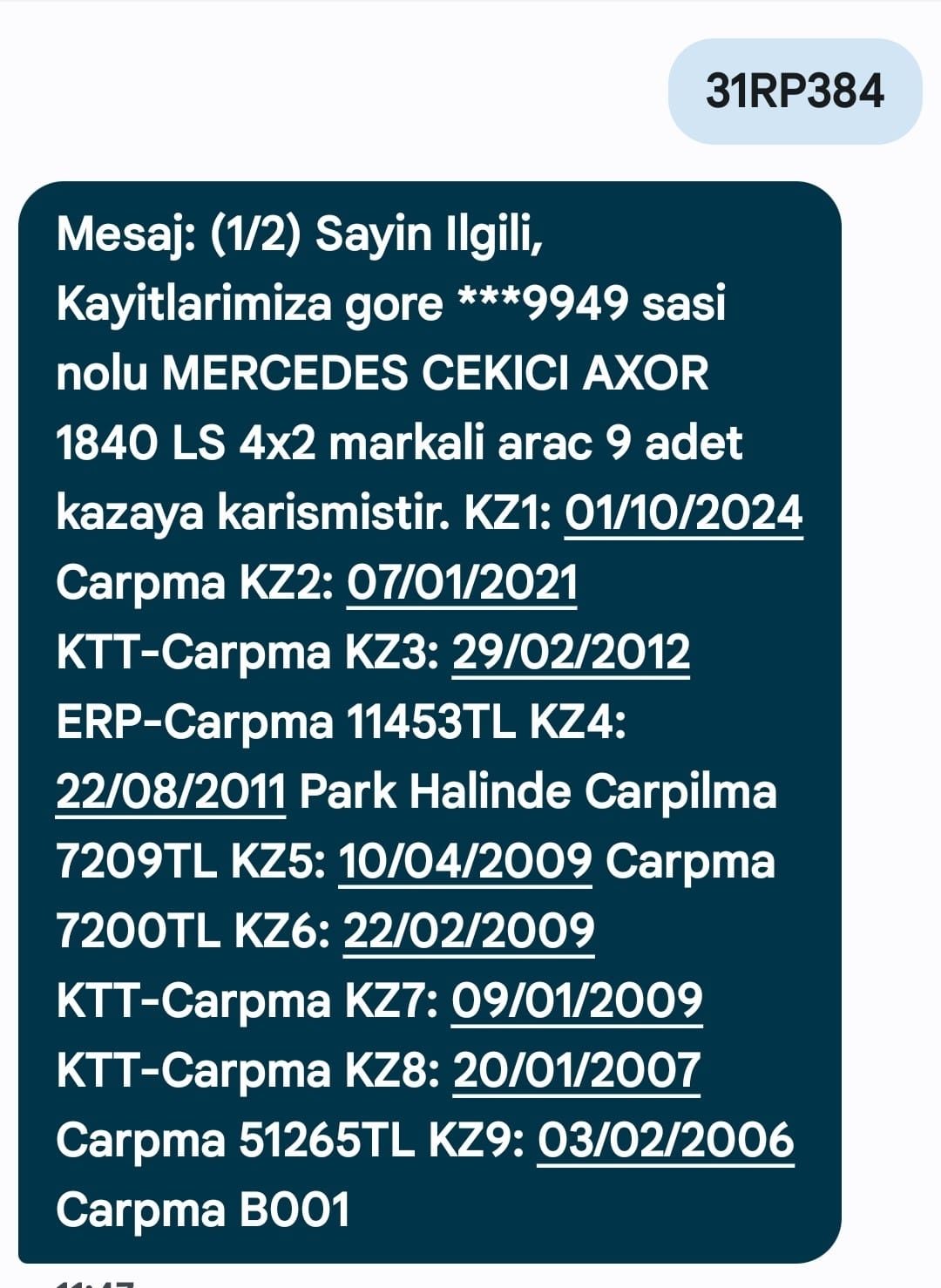 Üretici Firma : MERCEDES BENZ AXOR